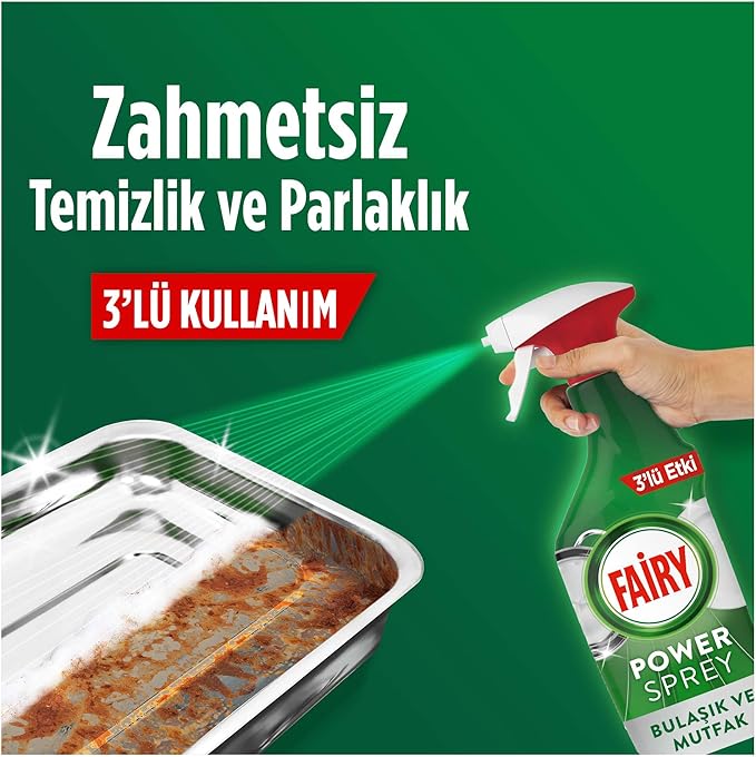 Fairy Power Sprey, 3'ü 1 arada, Bulaşıklarınız Ve Mutfağınız Için Zahmetsiz Temizlik Ve Parlaklık, Limon Kokulu, 500ml