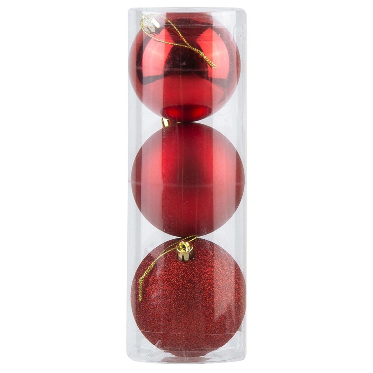 Yılbaşı Ağacı Süsleri 8 cm KIRMIZI Top Süs 3 lü Paket KIRMIZI Yeni Yıl Süsleri